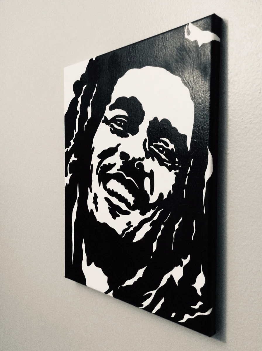 Hand Painted Art Canvas 16 X20 Bob Marley Painting Black Amp White Ebay